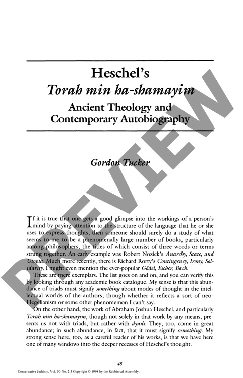 Heschel's Torah min ha-shamayim: Ancient Theology and Contemporary Autobiography