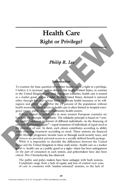 Health Care: Right or Privilege