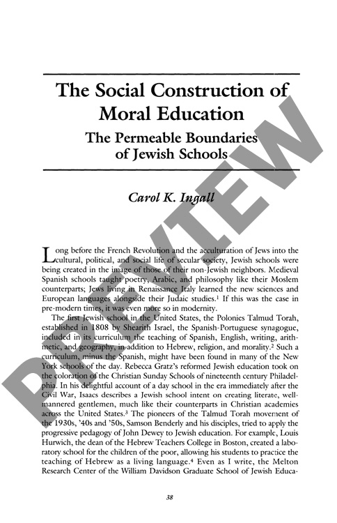 The Social Construction of Moral Education: The Permeable Boundaries of Jewish Schools