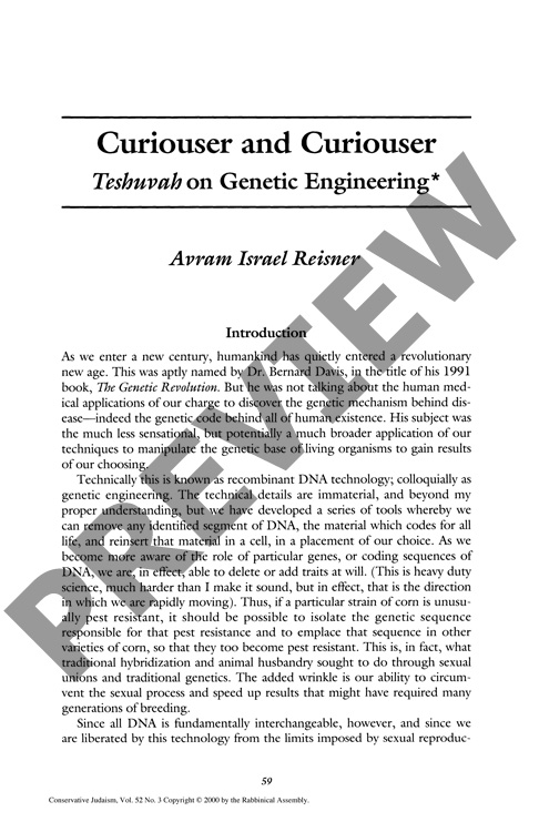 Curiouser and Curiouser: Teshuvah on Genetic Engineering