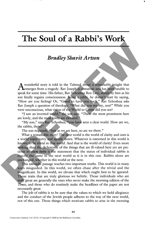 By Bradley Shavit Artson for CJ vol. 52 no. 4, Summer 2000