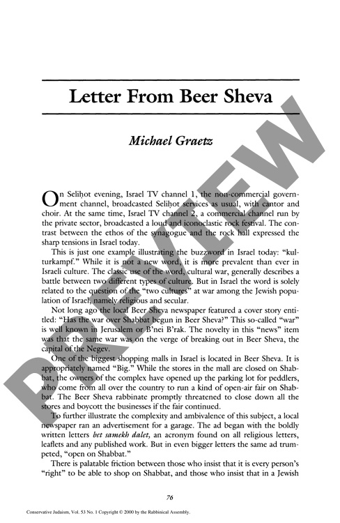 Letter from Beer Sheva