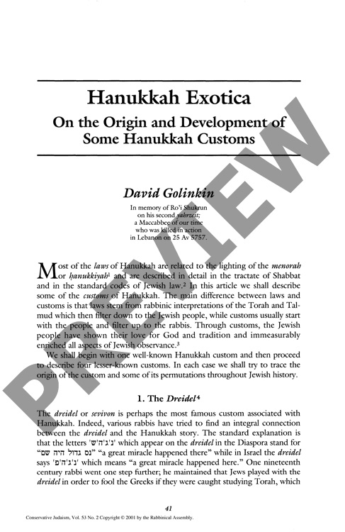Hanukkah Exotica: On the Origins and Development of Some Hanukkah Customs