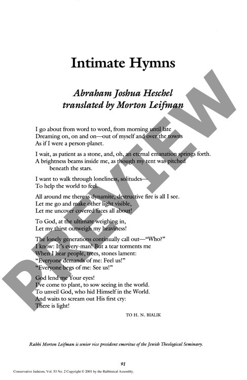 By Abraham Joshua Heschel for CJ vol. 53 no. 2, Winter 2001