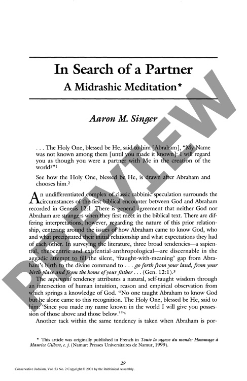 In Search of a Partner: A Midrashic Meditation