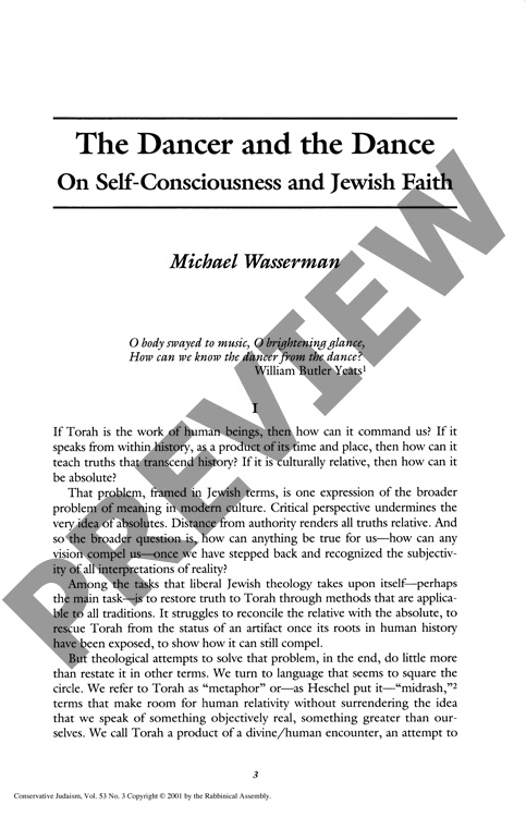 The Dancer and the Dance: On Self-Consciousness and Jewish Faith