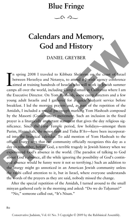Calendars and Memory, God and History