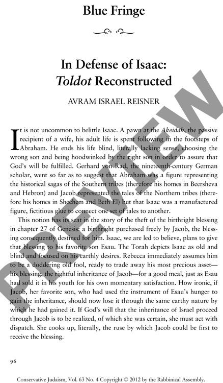In Defense of Isaac: Toldot Reconstructed